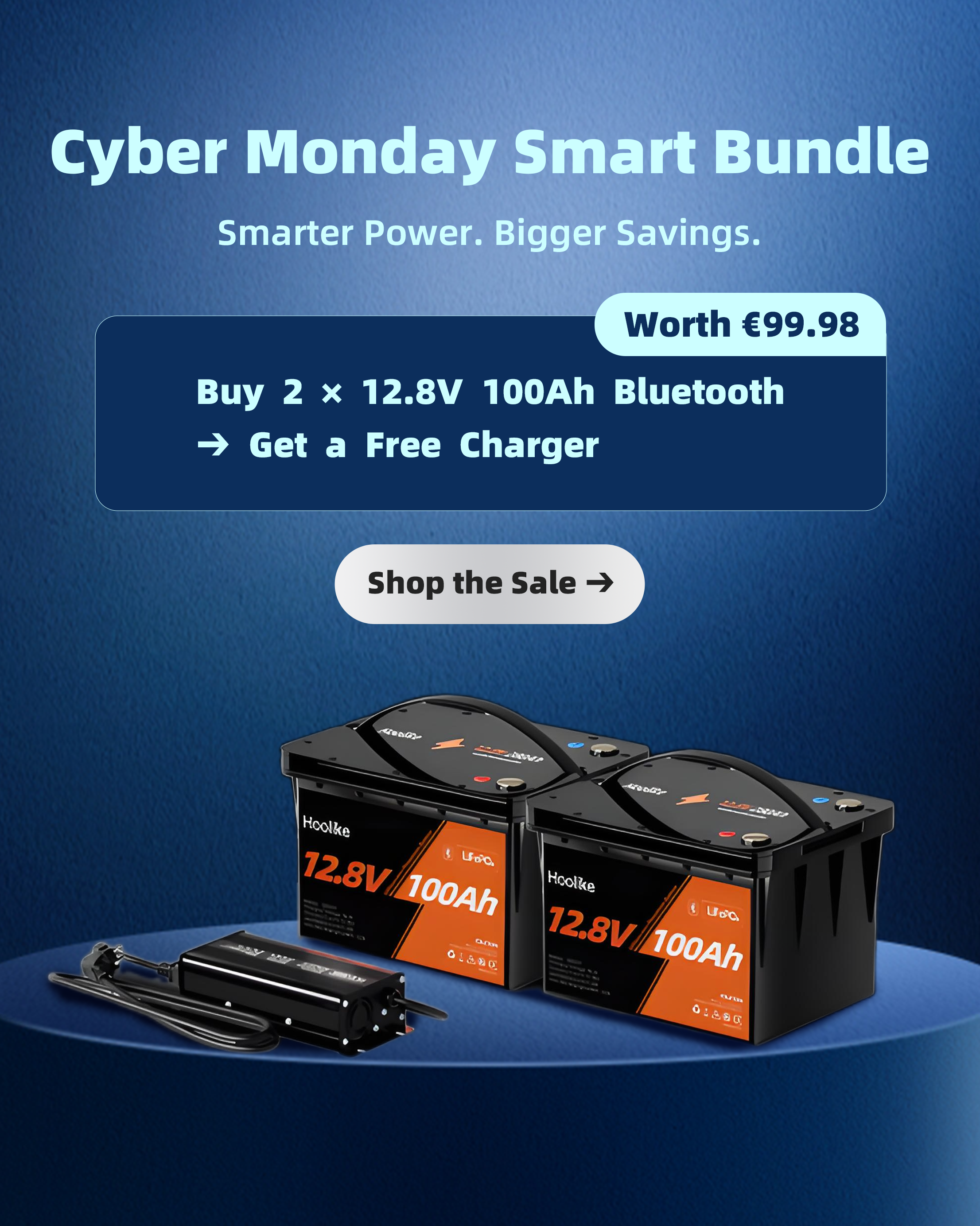 HOOLIKE 12,8V 100Ah Bluetooth-aktiveret litium-jernfosfat (LiFePO4)-batteri