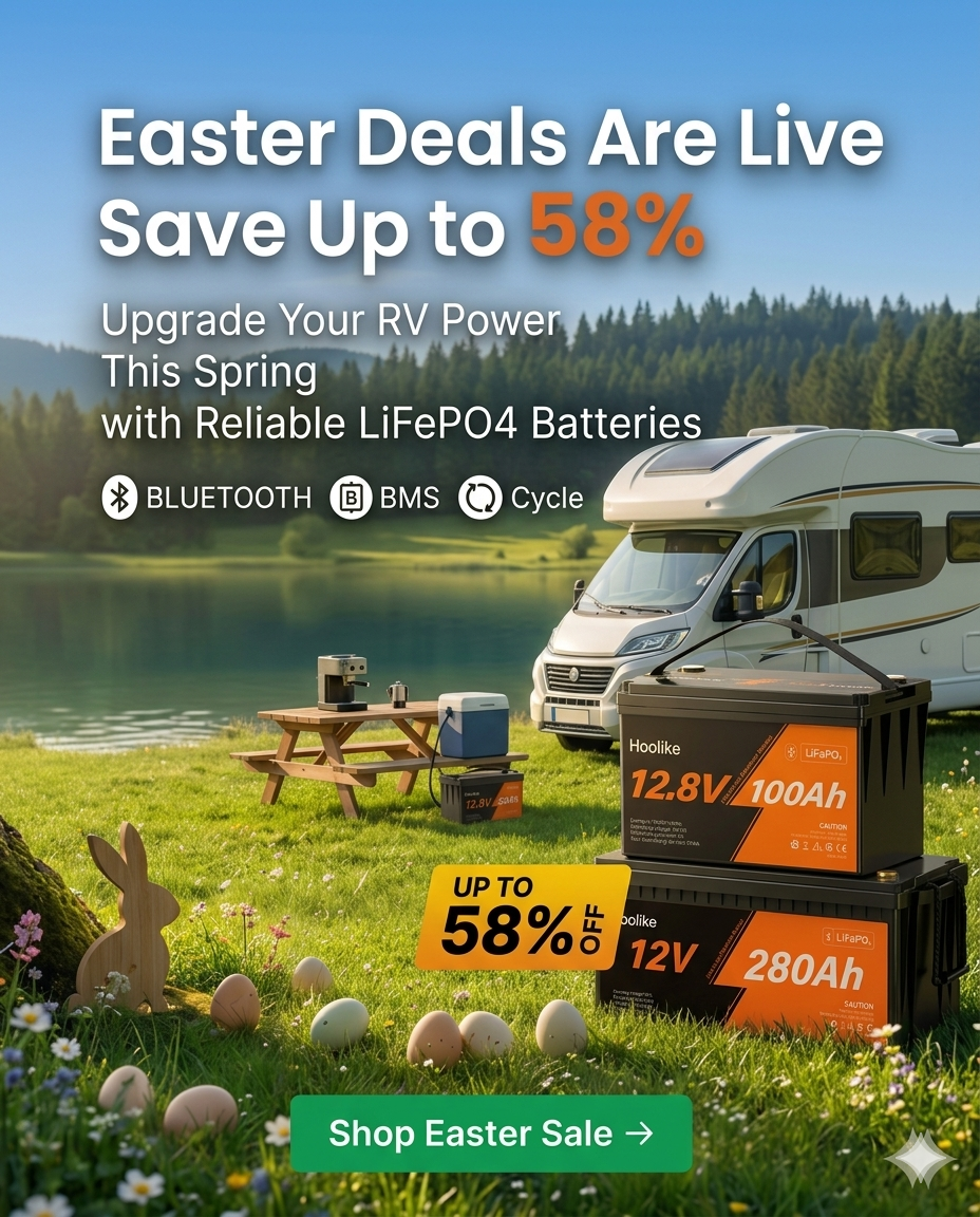 HOOLIKE 12.8V 100Ah Bluetooth-yhteensopiva litium-rautafosfaattiakku (LiFePO4)